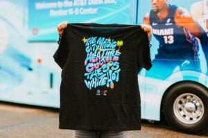 In addition to gameday activations, AT&T is leveraging the tour to give back to the local community in each city. In some cases, that means distributing devices to people in need, and in others, it means bring the Dunk Bus to a local organization. Like in Miami, where the brand hosted a community day at an area school in partnership with Learn Fresh, a nonprofit aimed at making learning more fun by combining sports, entertainment and STEM education.