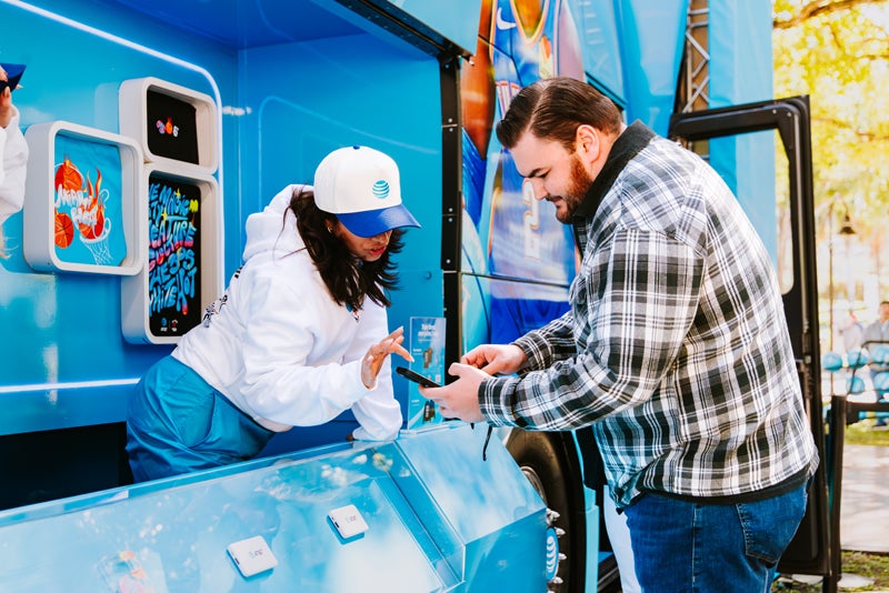 Across five cities, AT&T is parking the Dunk Bus in high-traffic areas and drawing people in with the allure of robotic hoops, gaming competitions, photo ops, player appearances and giveaways. And with each touchpoint, the brand is quietly showcasing how its mobile connectivity technology can connect fans to basketball whenever and wherever they want.