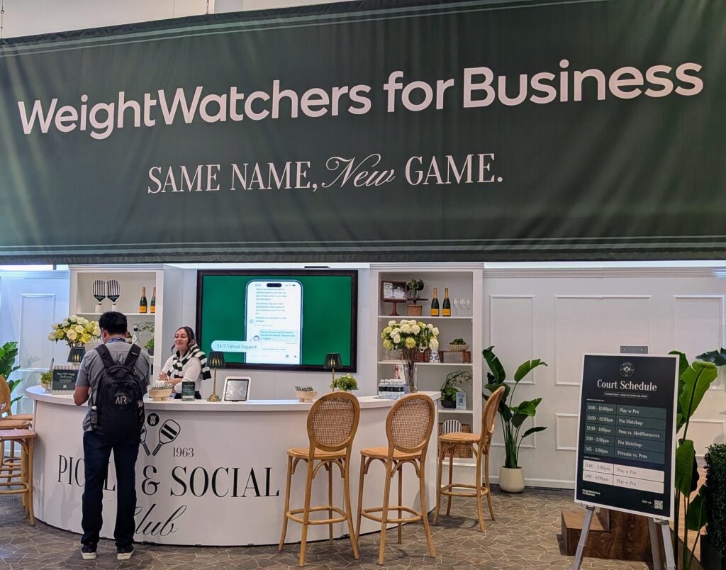 A social club and game tips from the pros at a pickleball court? Game on! WeightWatchers invited attendees to a fresh and classy social club to explore its AI-powered nutritional tools and other offerings, pick up custom swag and sign up for a game on the full-sized pickleball court on the show floor, where they could show off that Pickle & Social Club paddle and get it autographed by the champions.