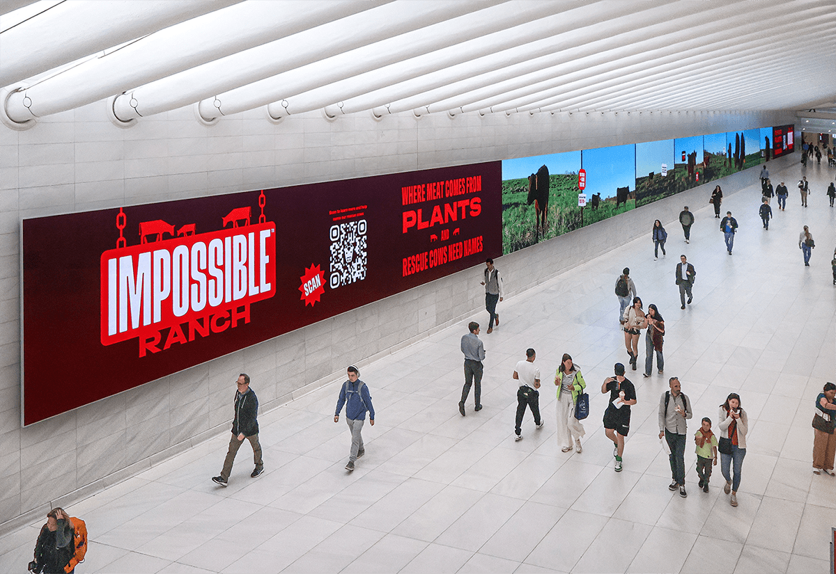 Impossible Foods also leveraged Earth Day (April 22) to promote the ranch at New York City’s Oculus building, where commuters were transported to the peaceful scenes of Impossible Ranch through massive graphics and a QR code that invited them to learn more about the brand and its new land. Here’s hoping the venture is a cash cow.