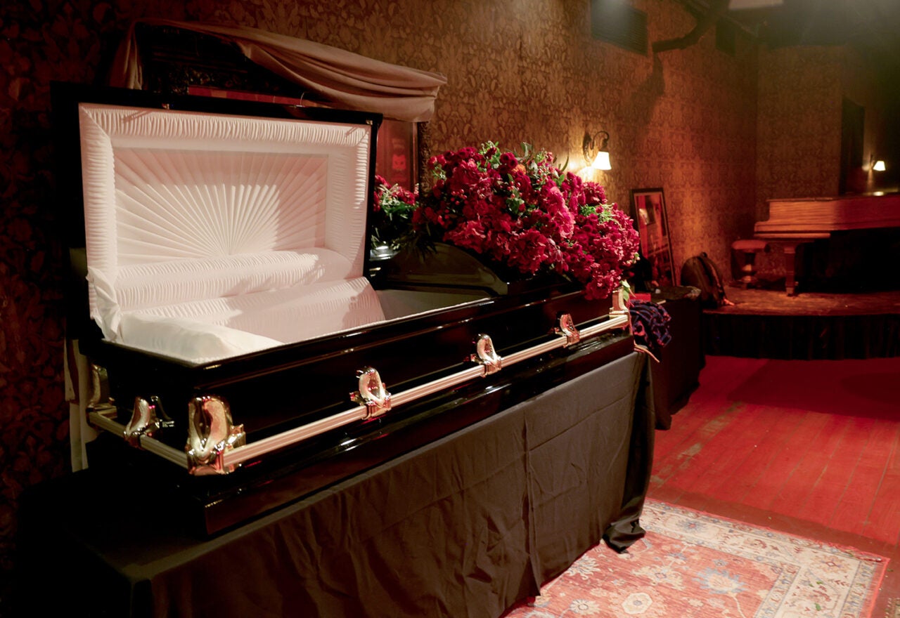 Throughout the evening, there were also piano performances, a sketch artist whipping up individualized portraits, a screening of season two’s first episode, themed menu items like blood-red popcorn and prosecco, a jazz trio that played the after-party, and a display of AMC’s Night Market merchandise collection. Our favorite part might have been the partner integrations, like an installation from Titan Caskets, and Vampons (oh yes, it’s a real product) available in the restrooms. Bloody brilliant.