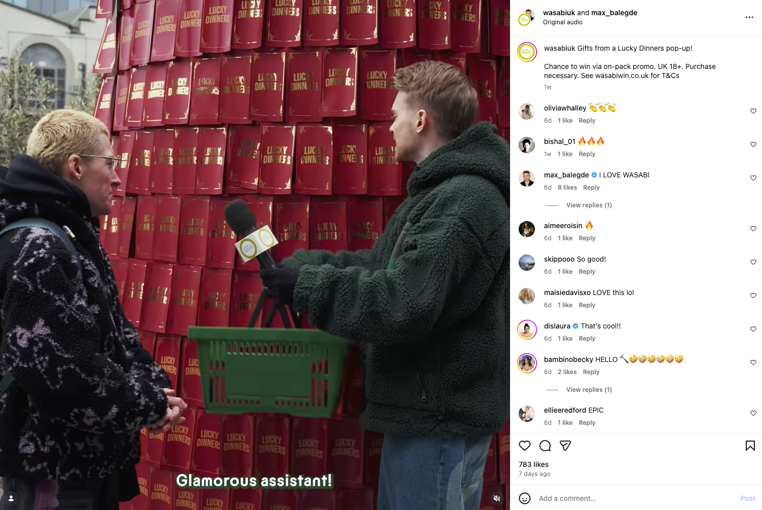 The activation at Camden Market was anchored by a towering installation of festive red envelopes dubbed the Wasabi Wonder Wall. Whether roaming around the installation or hidden inside it, UK influencer Max Balegde, who’s known for his random gifting, surprised passersby with their very own red envelopes. (Although, at times, a surprise red-gloved hand emerged from the Wonder Wall to assist Balegde.)