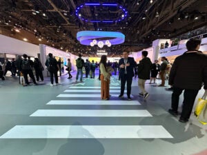 The warm, glowing amber might seem like an unexpected color for Mercedes-Benz, but that was exactly the intent for the brand’s CES 2024 exhibit, all about the experience inside the vehicle. A bright-red CLA Class concept car made for a captivating focal point (and a camouflage electric prototype was cool, too), but all the magic—and the crowds—were deep in the heart of the exhibit, around the seat box showcasing the brand’s new Mercedes-Benz Operating System (MB.OS). Just a few people at a time could experience the new AI-powered virtual assistant and the exterior design features, and the amber surroundings set an intimate and luxurious tone. And yes, when surrounded by walls, lit up the ceiling.