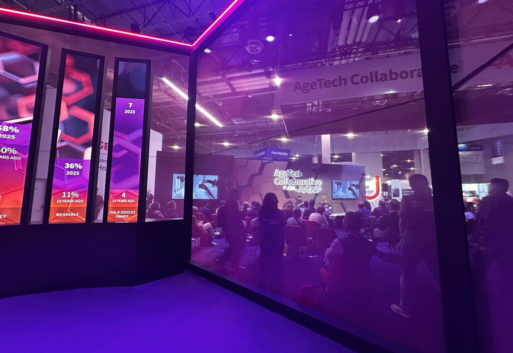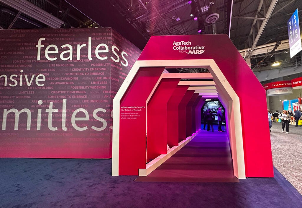 Building on our previous report and observations of various entrance moments in booths this year, AARP’s showstopping experience at The Venetian Expo is a complete reimagination from last year’s footprint and it uses transitions to change the conversation, and perceptions, around aging.