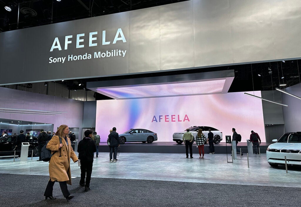 We’re seeing quite a lot of luminous, color-shifting design stories that play well against the convention center backdrop and have a soft, premium feel. Sony’s usual space in North Hall at the LVCC was reimagined this year and features Afeela, a brand from Sony Honda Mobility, with a dreamy, expansive LED backdrop you can see clear across the hall. (Build: Pinnacle)