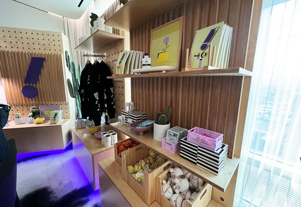In its private suite at the Aria, Yahoo set up a wall of giveaways for attendees to choose from. Items range from plush keychains and notebooks to gum and lip balms—chosen to help conferencegoers gather essentials and recharge. The team discovered that its white branded hoodies from last year’s CES garnered a lot of attention and interest, so for 2026, Yahoo created a black doodle-inspired version of the hoodie up for grabs in a giveaway that attendees can enter via a QR code. Once again, the reception is positive as brand ambassadors are sporting the comfy hoodie around the venue.