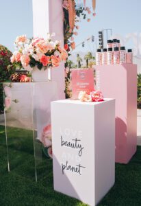 Unilever’s vegan haircare brand, Love Beauty and Planet (LBP), provided a much-needed service for consumers battling the desert heat: scented misting tents stationed at luxury venues The Saguaro Palm Springs, Margaritaville Resort and Renaissance Esmeralda Resort & Spa from April 14-16. Throughout the weekend, the brand provided shuttle service between the hotels and the festival grounds inside branded party buses brimming with flowers. Accordingly, the tents were designed as sensorial touch-up stations for festivalgoers awaiting transportation. Each tent pumped out a scent derived from the natural ingredients in LBP’s signature scent collections—Coconut Water & Mimosa Flower, Murumuru Butter & Rose and Vegan Keratin & Sun-Kissed Mandarin—and featured a design aesthetic to match.