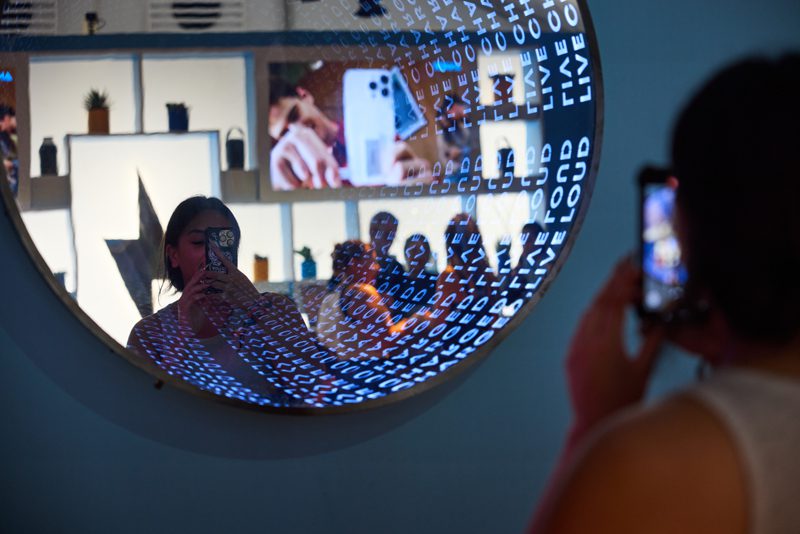 Those interested in “remixing” their style could can a QR code on-site that instantly created a new Pinterest board, then travel through various vignettes to find inspo. As they journeyed through the installations, participants scanned QR codes in each area to save their favorite ideas as Pins on the new board. Then, with a collage full of saved styles, attendees headed to the styling hall, where they had a personal stylist deck them out in their new aesthetic.