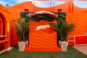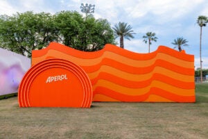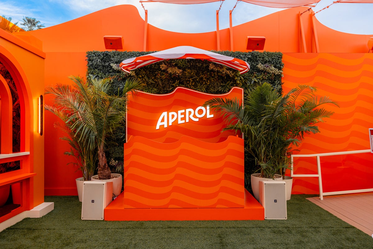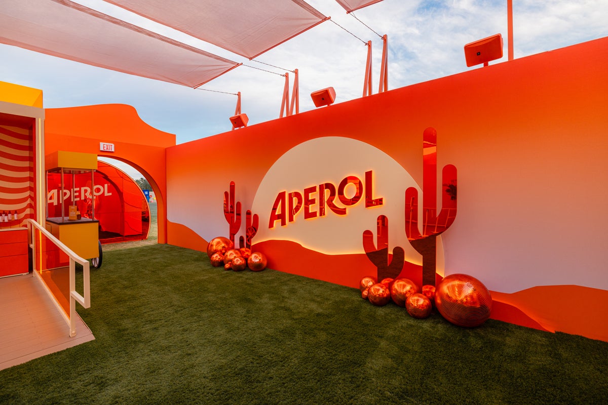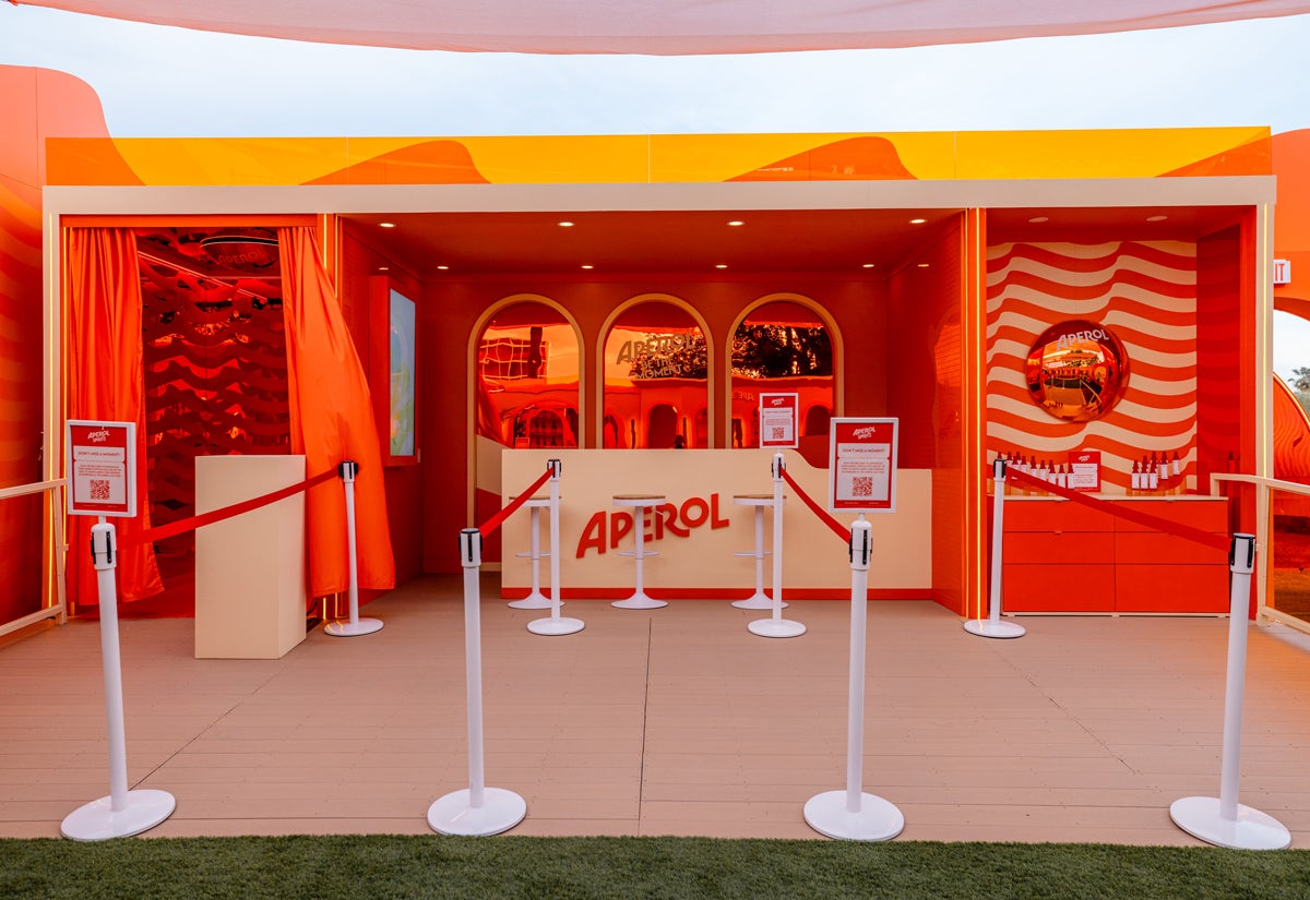 A bright-orange color scheme and a revolving door of activities marked Aperol’s Day Club activation at Coachella, where attendees enjoyed live dj sets, Aperol-inspired frozen treats, visual installations, tooth gems, bracelet-making and beauty stations, and curated photo backdrops. There were also surprise appearances from celebs like Joe Jonas and Ariana Madix, and merch from the company’s limited-edition festival-inspired collection.