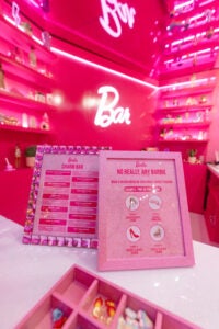 Highlights included an Entrance Gallery Wall with an entry corridor featuring a showcase of Barbie dolls and personas; a Charm Bar (a hot trend right now) where attendees could craft a custom doll-inspired charm that matched their Barbie personality—like Y2K Barbie and Green Flag Ken—and detailed photo ops, including a portrait studio with professional lighting that yielded physical prints and the option to share on social. (Agency: Mirrored Media)