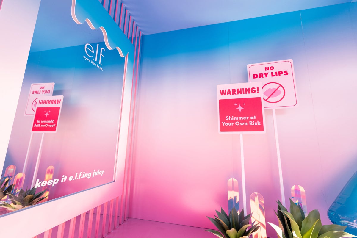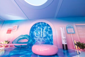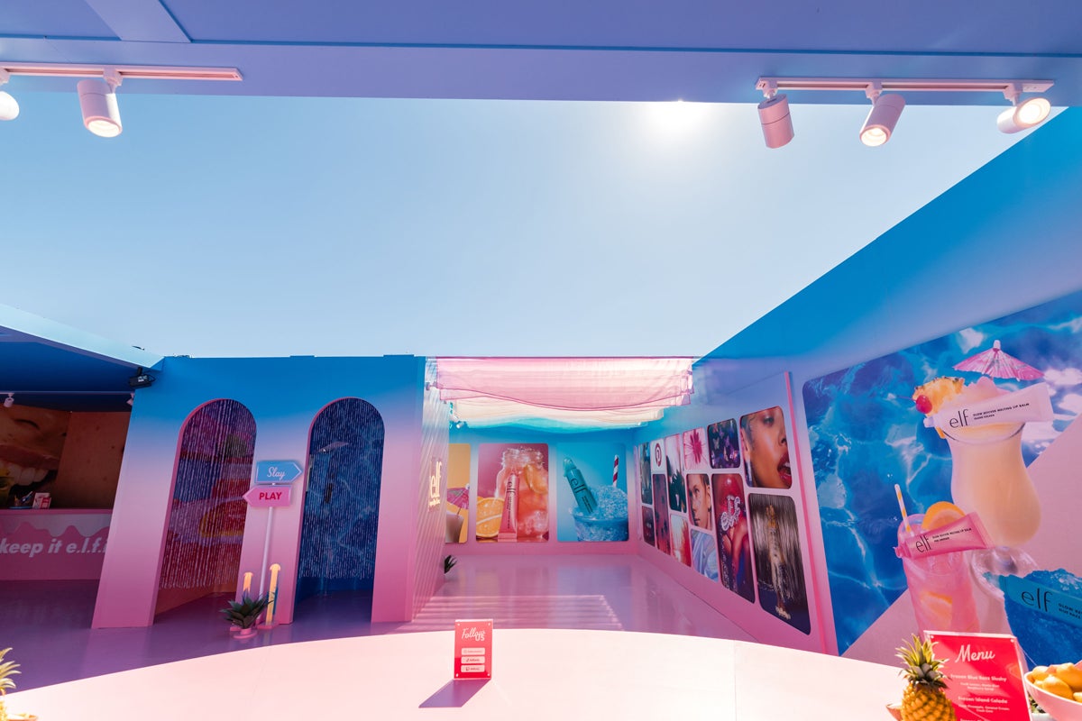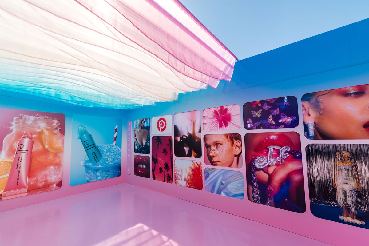 The tranquil, pool-themed footprint included custom gifting, curated photo ops, complimentary slushies tied to the new Glow Reviver flavors, and complimentary lip balms. There was additionally a co-branded activation featuring a 15-foot-long Pinterest board wall that showcased festival beauty trends and visuals, along with e.l.f. makeup artists bringing them to life. (Agency: The Bait Shoppe)