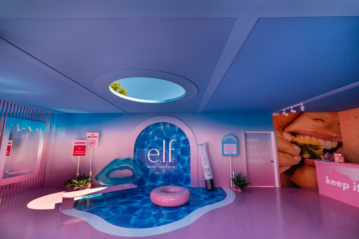 In a beauty-brand first, e.l.f. Cosmetics activated during both weekends of Coachella 2026, and will continue its streak this weekend at Stagecoach Music Festival. Its widespread reach is designed to promote the launch of three new Glow Reviver Melting Lip Balms that come in poolside drink-inspired flavors, which were the centerpiece of the brand’s e.l.f.scape to the Balm Desert activation.