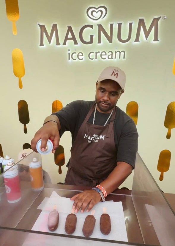 Magnum brought its famous ice cream bars, and a range of edible spray paint designs, to the 12 Peaks VIP area on-site, where fans could choose to customize a frozen treat with fashion trends or headlining artist-themed designs.