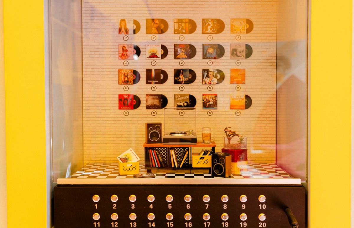 Inside the Gap-blue footprint, fans could choose a hoodie style, purchase it for $100, then created a personalized look by selecting patches, drawstring beads and collectible charms, which a brand “artist” then attached to the item. A claw machine containing Gap gift cards, a Polaroid photo op and vinyl records covering the walls were also part of the experience.