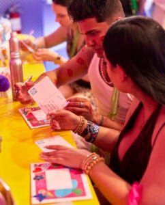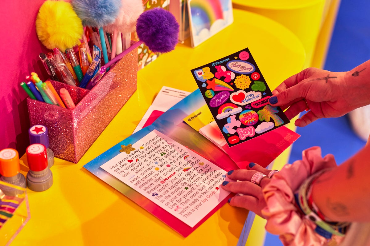 Among creative, analog-forward touchpoints offered were charm-making; physical, sticker-filled “Joy Guides” that could be mailed home as physical memories; and beauty touch-ups provided by e.l.f. Cosmetics that were inspired by looks from Pinterest’s Festival Trends Report.