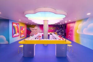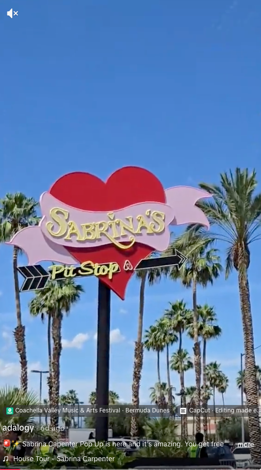 Airbnb teamed up with Coachella headliner Sabrina Carpenter on a glittery “Sabrina’s Pit Stop” pop-up in Indio, located just off of Route 111. Curated photo moments, sparkly props, a “refuel” slushie station with custom flavors, candy-inspired art and free, limited-edition merch were all in the mix.