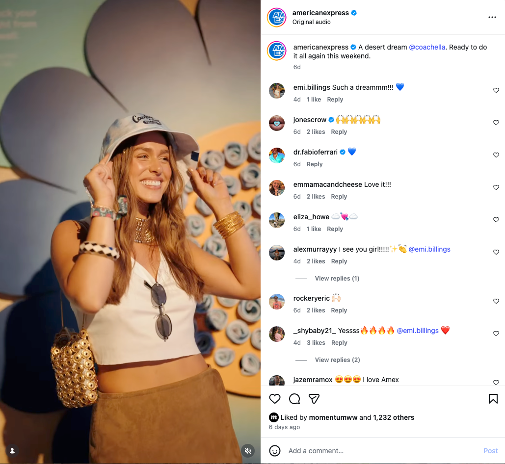 At the Amex Experience, a desert-themed footprint welcomed fans, who were invited to snap photos in a number of vignettes, like a merry-go-round installation; take a Bon Bon sweet treat from behind a mystery wall; snag a bucket hat from a flower installation; and interact with a co-branded Pinterest scent-layering station. Cardmembers had a whole slew of additional perks, including access to exclusive KATSEYE merch. To boot, the company partnered with Marriott Bonvoy on a Postcard Cabin activation.