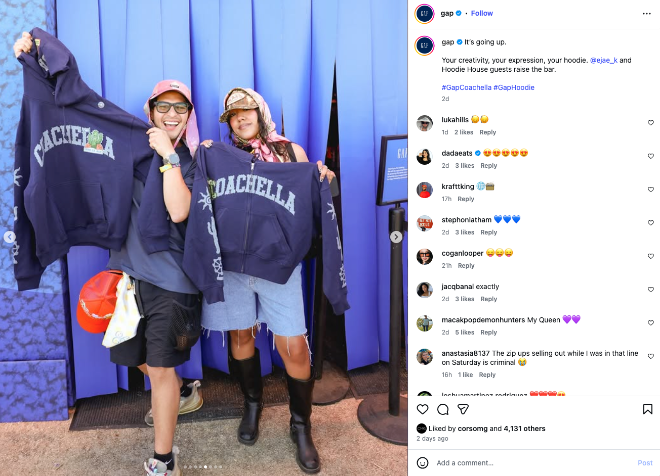 Clothing apparel sponsor Gap ended up being the talk of the town during Coachella 2026 thanks to its highly coveted festival hoodie, which could be customized at its Hoodie House activation. In fact, High Snobiety reports that the experience drew the longest lines of any brand activation during the festival’s first weekend.