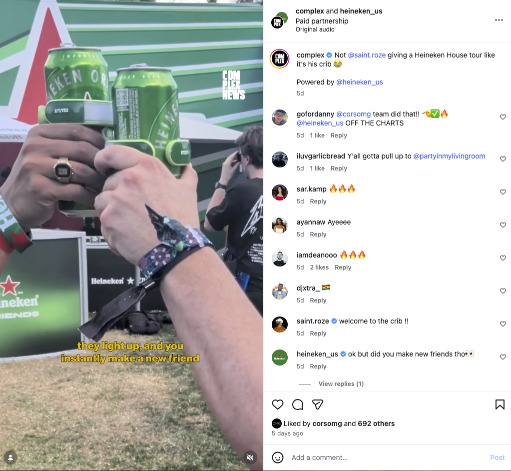 The longstanding Heineken House returned to the festival with a beer garden, photo backdrops and a lineup of live performances across both weekends on tap, all of which helped further the brand’s ongoing Fans Have More Friends platform.