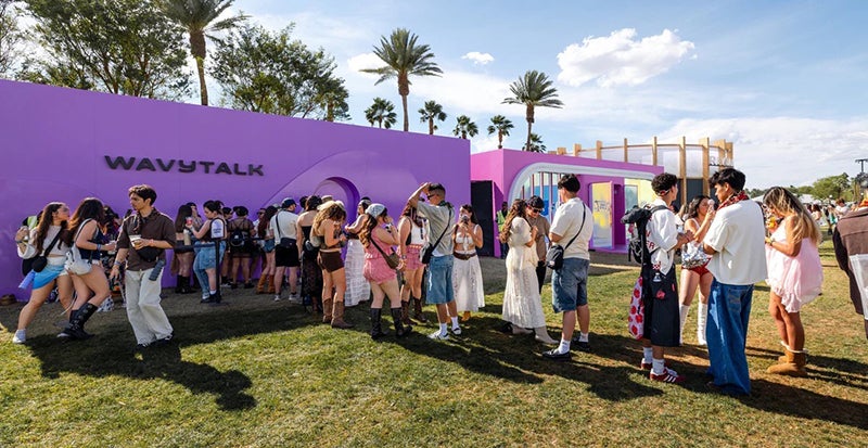 Wavytalk, the official hair tools partner of Coachella 2026, hit the grounds with a Spotlight Hair activation designed to showcase how its devices can deliver dynamic hairstyles that withstand festival conditions. Attendees could sign up for a free appointment and have a professional stylist create one of six signature festival looks. They could also do their own touch-ups at self-styling stations, and play a Plinko-style game for a shot at winning full-size hair tools, festival bundles and exclusive merch. And then there was the Spotlight Studio photo booth where fans captured their finished looks.