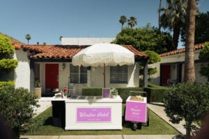 Retailer Windsor was another brand to leverage a hotel takeover, hunkering down at the Avalon in Palm Springs with a hand-selected group of influencers. Attendees at the “style oasis” were treated to fully branded rooms featuring exclusive product; a gifting suite stocked with festival-ready pieces; a pool party with a dj, drinks and eats; and photo ops, like an old-school phone booth. (Agency: In-house)