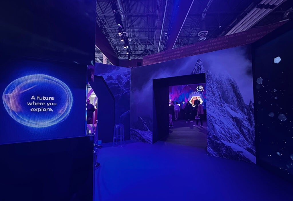 Speaking of Google, the brand traded in a footprint for a splashy takeover of Sphere. Intel, which famously traded in a booth at the Las Vegas Convention Center for a controlled environment at The Venetian, this year wove its Intel Panther Lake iconography from its keynote to a motion-interactive LED cube within its showcase to a wrap of the monorail. And Samsung traded its vast LVCC footprint for a public exhibition of sorts inspired by its usual visual spectacles.