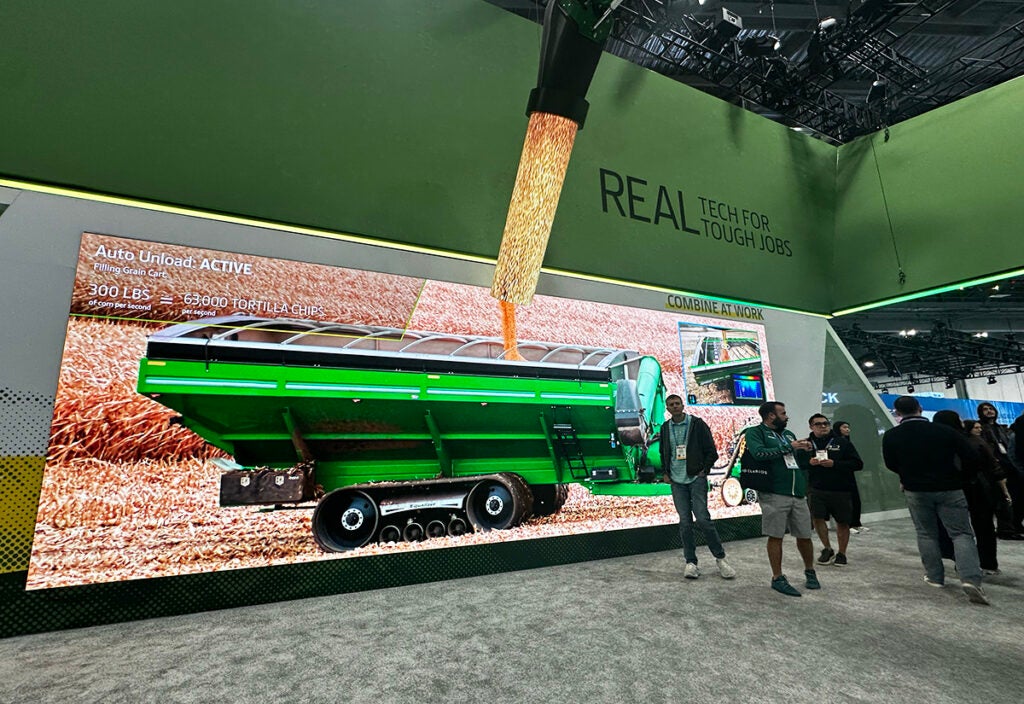 AI-powered automation and data-driven farming were in the spotlight in John Deere’s booth, where attendees could get up-close-and-personal with the new equipment and test out the innovative processes through simulations. From an experiential standpoint, we loved the physical-digital illusions, where physical elements, such as stalks of corn and the magnificent combine attendees love to climb on, were choreographed with video rolling on integrated LED screens, creating an effect that the combine is actually harvesting the corn. We’re seeing this type of scenic storytelling more and more, creating a transportive moment out of static elements. (Build: MC²)