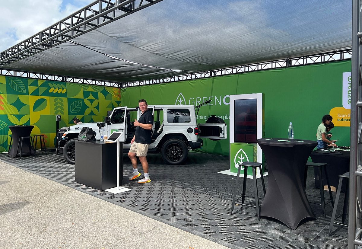 EV education platform GreenCars gave attendees the chance to win a Jeep Wrangler 4xe plug-in hybrid for a year by subscribing, and they could also pick up branded swag items, such as reusable bags, stickers, keychains and cork pens. Its green, leaf-themed booth (perfect for the St. Patrick’s Day weekend) offered seating areas and digital signage with resources on zero-emission vehicles, their incentives and inventory from Lithia & Driveway.