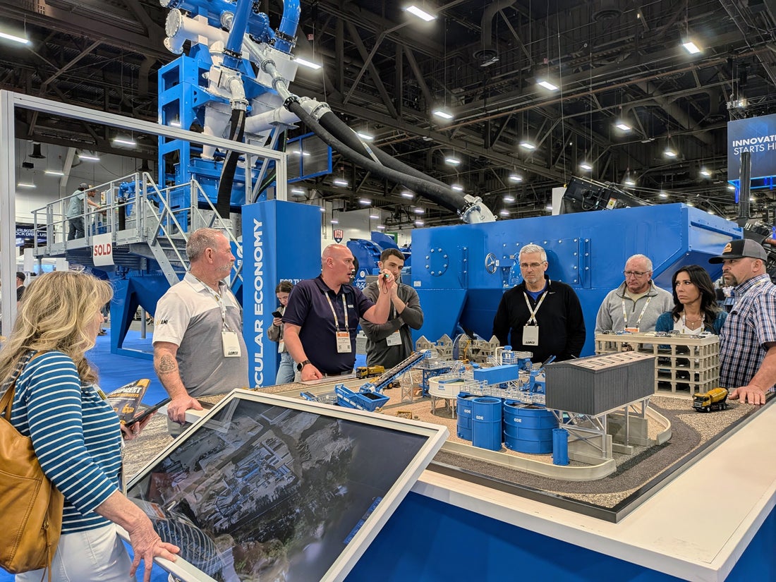 Bringing an entire job site inside a convention center is hardly feasible, so CDE showcased its wet processing solutions for waste recycling and natural materials processing applications in a highly detailed mockup, and took attendees on a tour. Large screens on the sides offered a deeper dive into specific technologies.