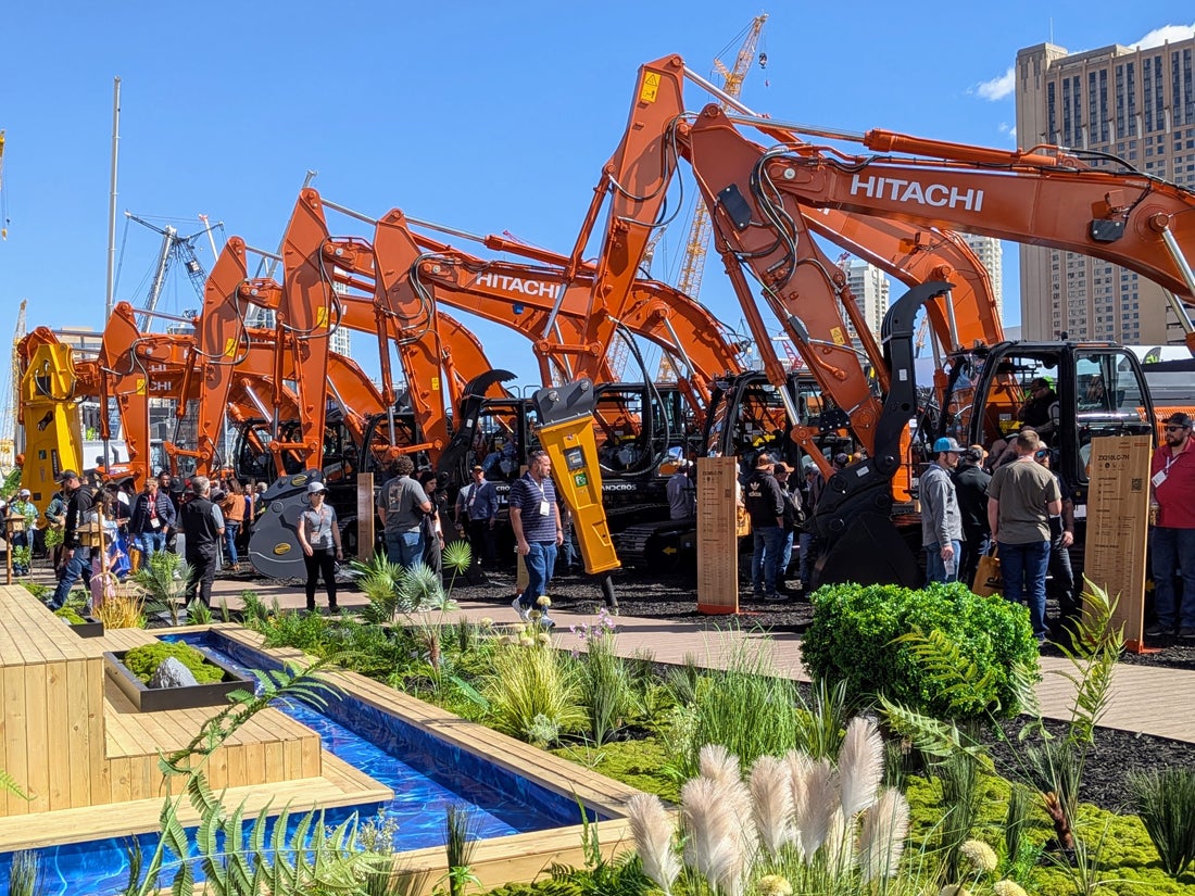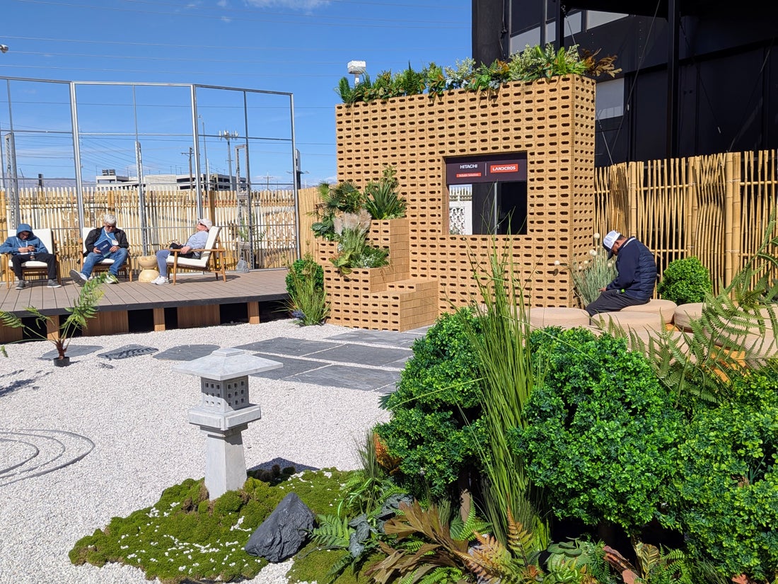 Hitachi brought a surprising sense of calm to the bustle of the Festival Grounds with a 30,000-square-foot booth inspired by Japanese landscaping traditions and featuring an actual Zen garden. Built around the theme “Connecting Harmony to Innovation,” the space blended the company’s machinery lineup and next-level technical solutions with minimalist landscaping elements, including raked gravel, sculptural stones and quiet pathways, and invited attendees to slow down and explore.