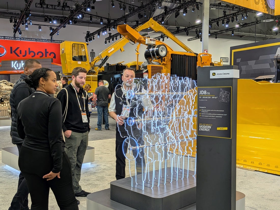 To showcase the upcoming JD5 and JD8 industrial engines, John Deere anchored its exhibit with engine prototypes that highlighted the modular configurations and flexible applications. The lighted plexiglass model allowed the brand to introduce the models in anticipation of their availability.