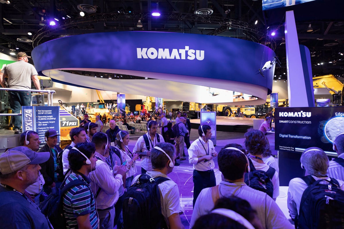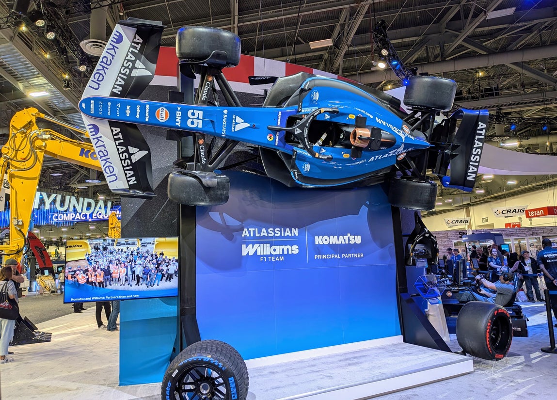 Komatsu’s sprawling exhibit had a commanding presence in the West Hall, its signature brand colors framing an impressive lineup of excavators, dozers and next-gen equipment. Attendees could also explore the company’s digital technologies and service solutions, and learn about the new capabilities in the presentation theater that anchored the exhibit. Arguably, one of the most popular touchpoints was a race simulator presented with the Atlassian Williams F1 team, featuring a race car floating above the photo op. Large props at unique angles continue to gain speed as a design trend.
