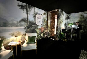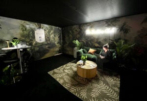 Promoting its professional membership program for businesses, Wayfair popped up three connected showrooms that felt trendy and lived-in, each with their own wallpaper and décor styles that showed off the site’s furniture offerings. Instead of having a dedicated welcome desk, brand ambassadors worked off of a dining table for a seamless look.