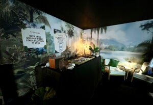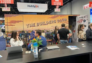 One of Realtor.com’s exhibiting competitors recommended we visit its booth because of the immersive experience, and we were not disappointed. The Builders Club was a fully enclosed footprint that offered attendees a respite from the show floor with dimmed lighting and Latin music playing. The Havana-inspired lounge featured tropical scenery on the walls, greenery and a leafy carpet. Attendees could pick up leather luggage tags, keychains and “cigars.” Each day of IBS, Realtor.com hosted entertainment and happy hours, featuring live Cuban jazz music, cocktails and empanadas.