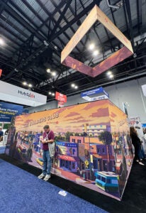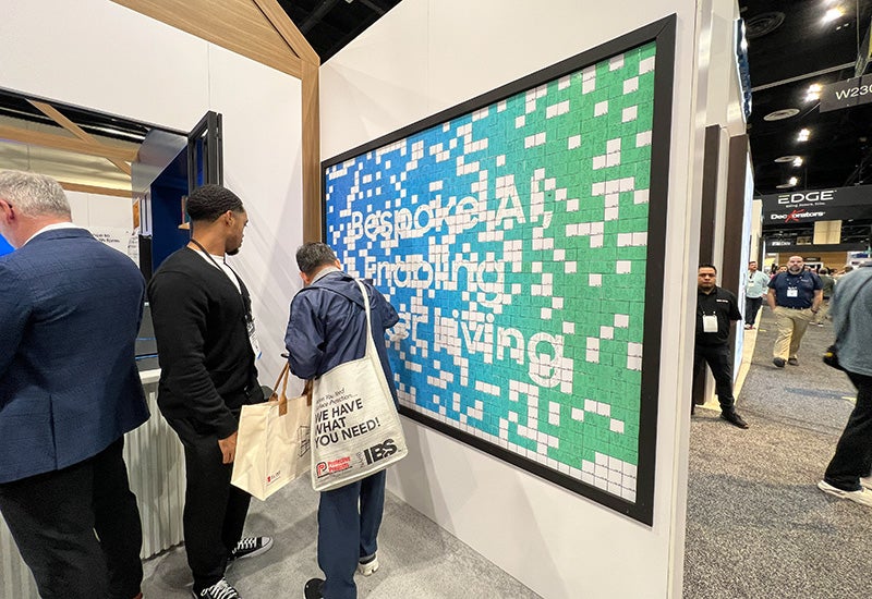 Showrooms and model homes garnered the most attention, and some were so well done that they took us out of the trade show environment for a bit (more on that below). Of course, many booths had a strong focus on AI and cutting-edge tools, but analog demos also pulled in crowds, like a nail hammering competition. Practical swag, including measuring tape keychains, carpenter pencils, travel mugs and even paint samples, were distributed freely.