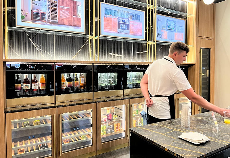 Another highlight in the booth that elevated the experience was the showcase of Dacor’s Undercounter Wine Cellar and Wine Column. There, a bartender served up mocktails, such as Velvet Flame with pomegranate and lime juices.