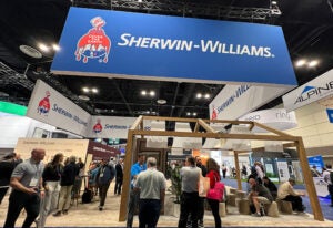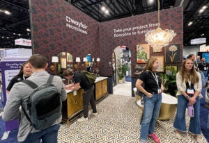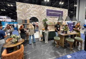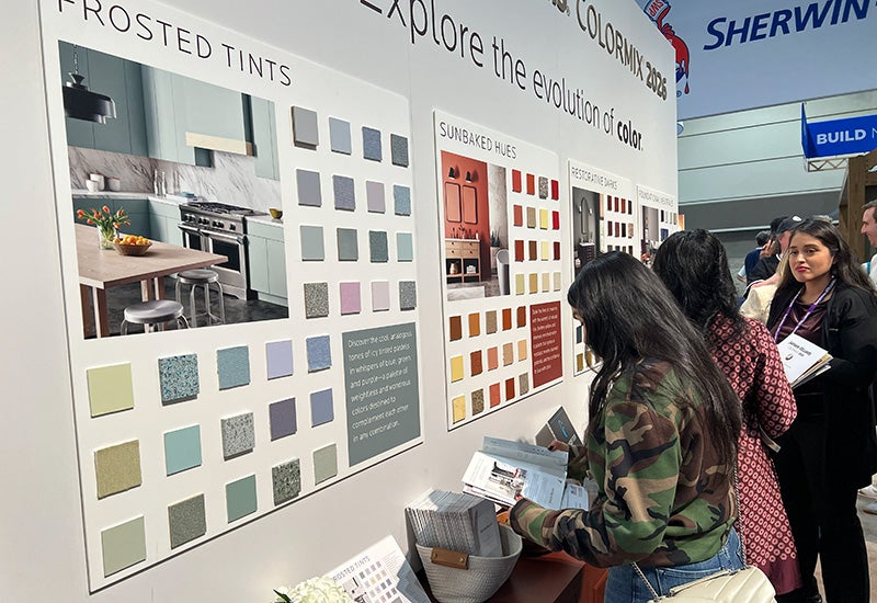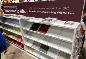 Sherwin-Williams’ booth was dedicated to its biennial Colormix Anthology trend report, presenting four color palettes “poised to shape the future of design in 2026 and beyond”: Frosted Tints, Sunbaked Hues, Restorative Darks and Foundational Neutrals. Complimentary forecast and paint samples were available for pickup, and the brand curated several photo spots to encourage social sharing and tagging, like a small bathroom depicting the Sunbaked Hues and a wall of paint rollers displaying the trendiest shades.