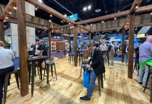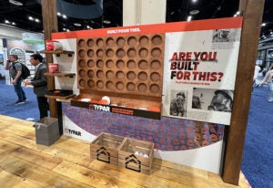 “Are you built for this?” TYPAR challenged attendees to a game of “Connect Four,” and “Built Four This” fit perfectly in the wooden bar environment, surrounded by high-top tables and stools, string lights and a faux bar with branded beer tap handles.