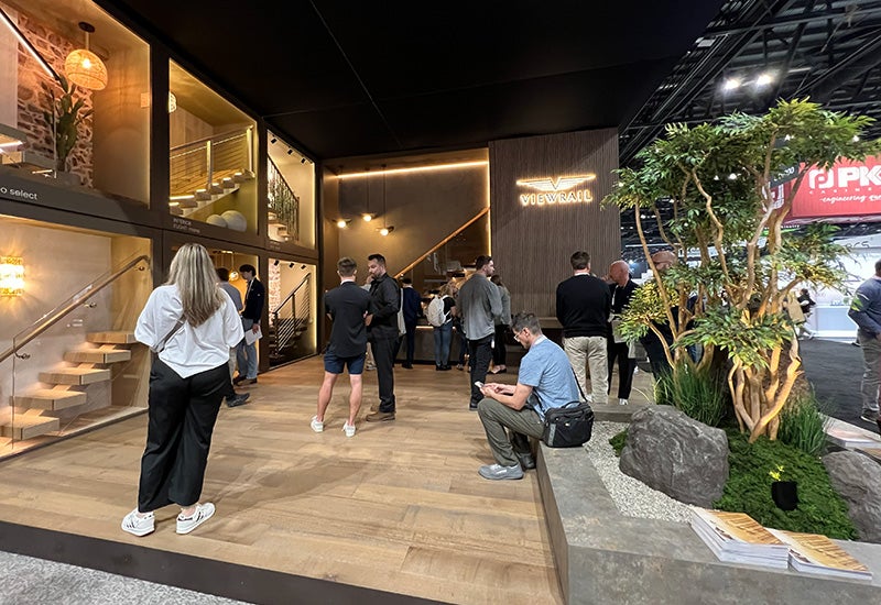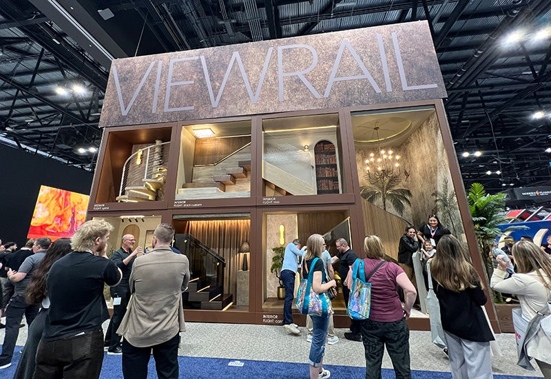 The modern Viewrail booth stopped a lot of attendees in their tracks as they stared up at the stair configurations displayed in a multilevel, multiroom grid configuration. It felt like peeking into a giant dollhouse.