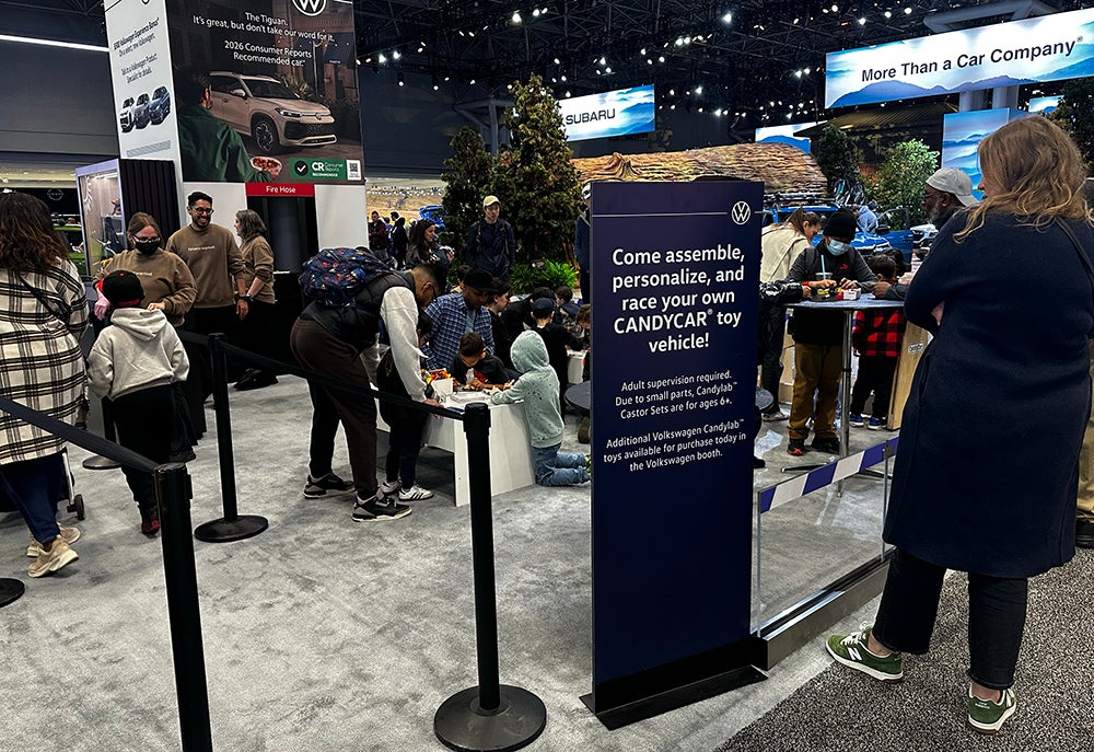 From a claw machine in Toyota’s booth dishing out puppies wearing Toyota-branded scarves and squishy sedans and trucks (and no data collect attached to it), to a Sasquatch photo activation for Ford Bronco, there were plenty of “fun” engagements designed for the families that came to NYIAS 2026.
