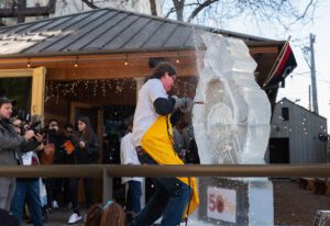“The Texas Chain Saw Massacre” carved out a chilling stunt to celebrate the franchise’s 50th anniversary at SXSW—literally. On March 9, Dark Sky Films partnered with an Austin-based ice sculptor to create a larger-than-life sculpture of lead character Leatherface, along with the film logo, on bustling Rainey Street. The sculptor himself even dressed as Leatherface, disrupting the area around the Stay Put Brewery as he used a real chainsaw to bring his “self-portrait” to life while passersby witnessed the carving in real time and snapped photos of the spectacle. (Agency: Lupine Creative)