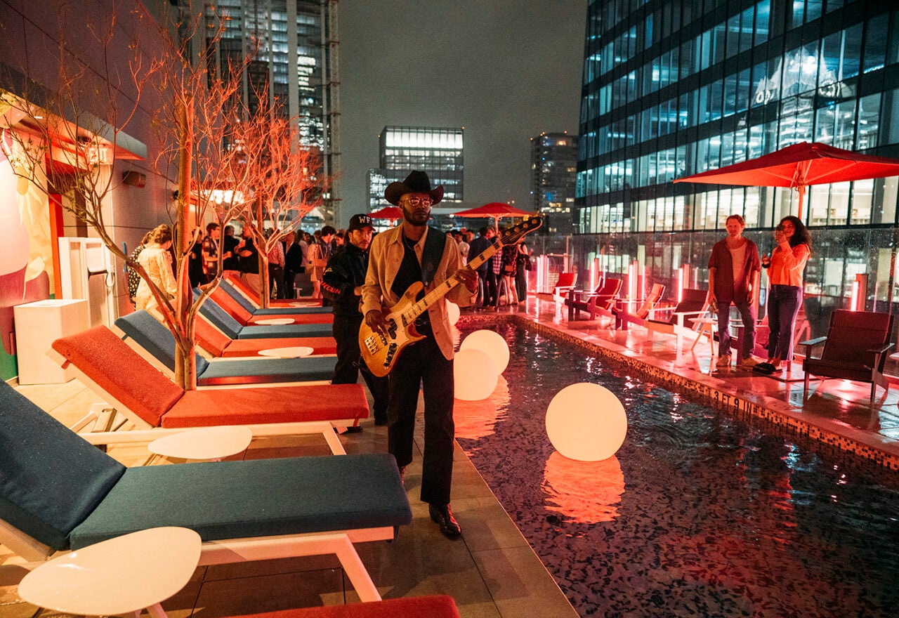CitizenM leveraged SXSW 2024 as a platform for the debut of its Austin Downtown hotel property, and that meant hospitality was top of mind for the brand. To celebrate the new location on March 7, CitizenM hosted a flamboyant, Austin-themed launch event featuring a Secret Theatre experience, a rooftop pool, cocktails and bites, a colorful living room stocked with premium artwork, and a cast of intriguing costumed characters who floated around the space. Attendees could also check out an intimate karaoke haven, and discover the city’s tiniest comedy club. (Agency: Design Scene)