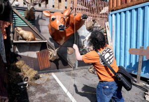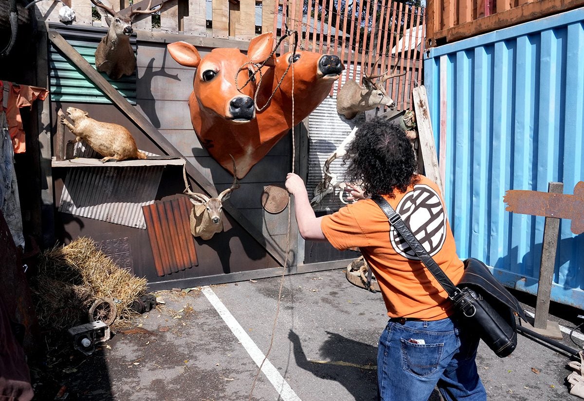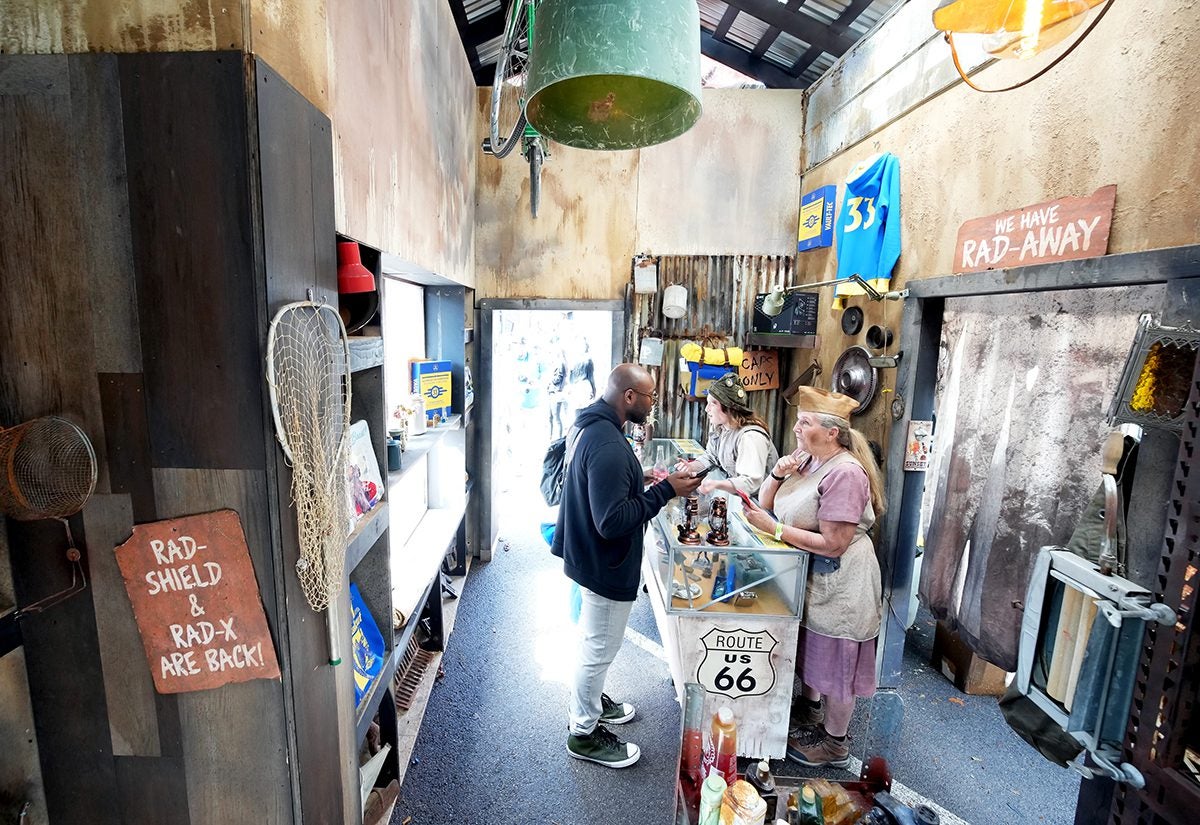 Prime took over the Hotel San José parking lot to build the massive fan universe, which spanned aggressive locals selling their wares and the local cuisine; a trading post where the friendly shopkeeper taught attendees about collecting bottle caps; a Vault 33 Resident Portal offering scavenger quests; a chance to lasso taxidermized wasteland creatures; and snacks like Fancy Lad Snack Cakes and cuts of “ass jerky” (yes, we’re still giggling at this one).