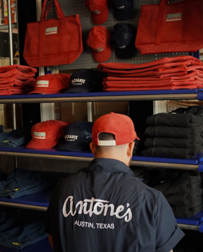 Enchanté, the clothing brand started by former Formula 1 driver Daniel Ricciardo, returned to Austin with the Enchanté Garage Pop-up shop, presented by Cash App, at Antone’s, Oct. 18-19. Fans waited in a long line to enter the iconic blues venue that was transformed into a garage environment, complete with blue barrels and flags with the Enchanté Parts & Service logo, neon signage, hats and totes hung on workstation pegboards, brand ambassadors dressed in Enchanté mechanic coveralls, and a classic red pickup truck with a cargo bed full of flowers. Partner Patrón served up ranch water to attendees.