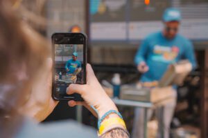 Outside, food influencer and longtime Gorton’s partner Shay Spence led live cooking demos using Gorton’s Shrimp and shared tips for preparing it at home. The merch table was designed to look like an ice-filled glass seafood display case with Gorton’s t-shirts, fish stick-patterned bucket hats, caps, can coolers, sunglasses straps and tote bags. Participants spun a wheel to decide which merch item they’d come away with; extra food and drink tickets were also in the mix.