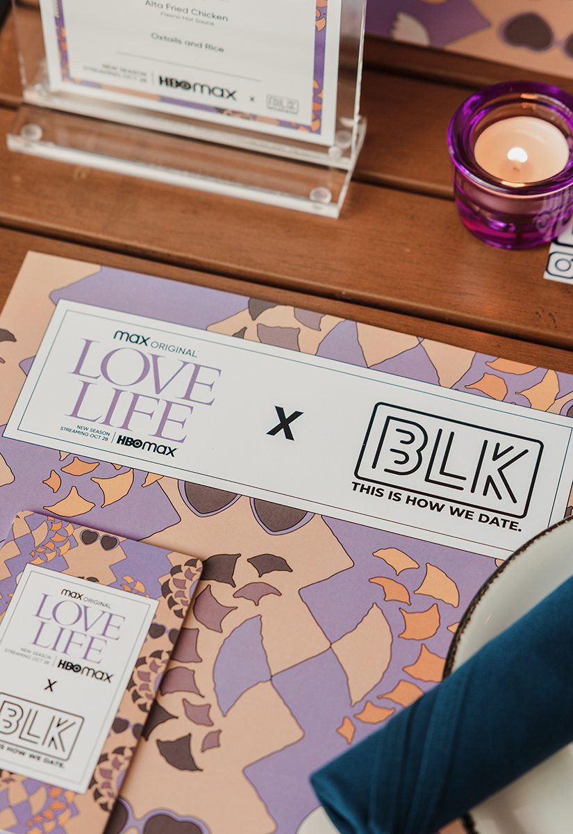 Themed placemats and customized food and cocktail menus were inspired by the series and its characters including Jessica Williams, Punkie Johnson and Chris “Comedian CP” Powell. And diners could keep conversation flowing with “Love Life” and BLK-branded branded conversation cards featuring creative talking points about everything from favorite books to dating to relationships.