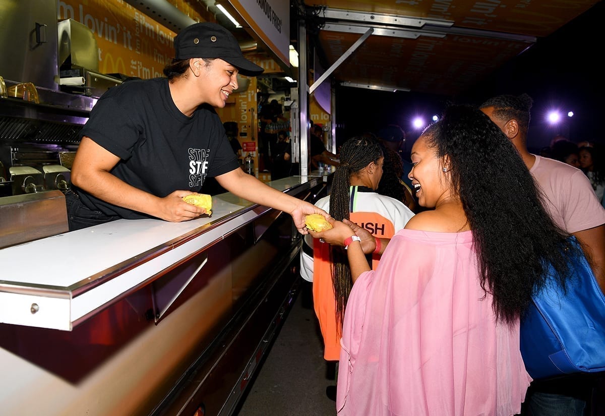 At each concert event, attendees listened to djs spin tunes ahead of the main act, snagged city-specific screen-printed shirts, rubbed shoulders with various VIPs like “Empire” actress Serayah McNeill, battled each other in an old-school arcade, and munched on McDonald’s cheeseburgers and fries served out of the brand’s mobile unit, the McRig. Insta-worthy backdrops completed the experience. In New York, for instance, McDonald’s paid homage to Taylor’s song “Rose In Harlem,” with an installation of yellow roses that served as a photo backdrop. And in Chicago, a live muralist painted a branded convertible on-site, which consumers could later pose with. A slew of influencers, from Justine Skye to Vic Lloyd, was also on hand to capture content.