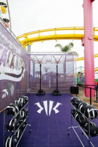 For one day only, on Feb. 15, Santa Monica Pier’s Pacific Park became ANTALAND, hosted by sportswear brand ANTA and Kyrie Irving of the Dallas Mavericks. There, families and basketball fans played carnival-style game stations, including pop-a-shot basketball, a ring toss and a branded prize wheel. Exclusive ANTA merch was available for purchase at a pop-up shop, and celebrity guests made appearances. (Agency: Team Epiphany)