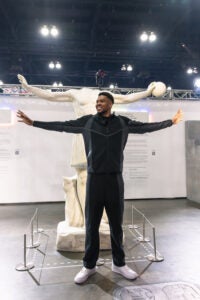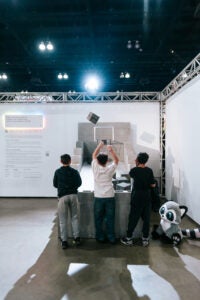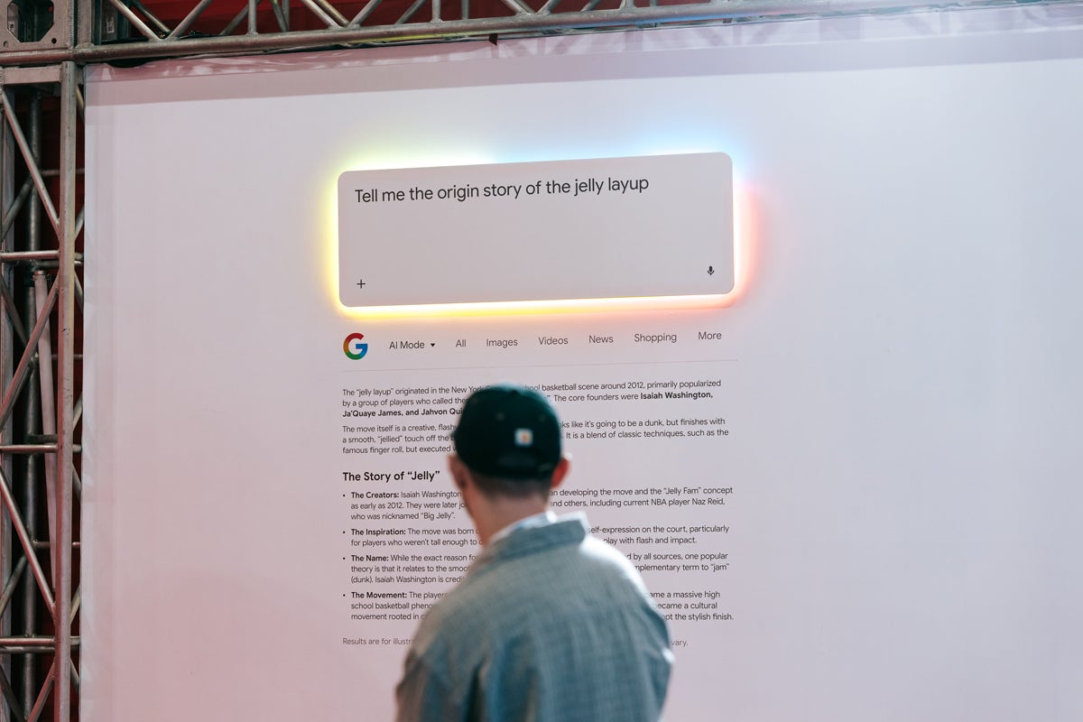 Google invited NBA Crossover fans to “ask anything about the game” at The Search Bar. Google Search’s AI Mode was translated into an art gallery-inspired space with larger-than-life installations, like a jelly mold, marble player statue, hanging Wilson rock, painting of a basketball game scene and concrete-block hoops setup. Upon entering the space, attendees received a small crossword puzzle, and at each exhibit, they had to find a keyword—such as JELLY, ROCK and AIMODE—to complete the puzzle and receive a giveaway.