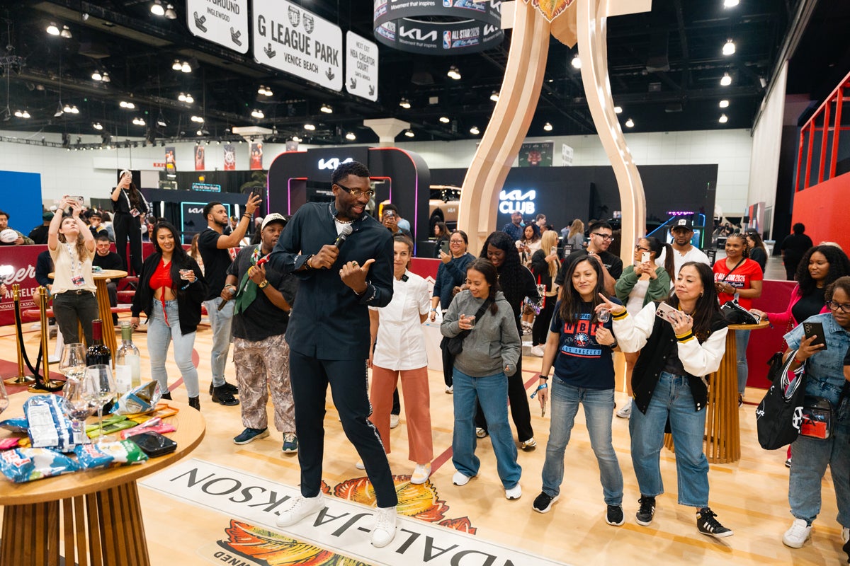 On the ground, basketball fans turned out in Los Angeles, Feb. 12-15, to catch NBA All-Star’s first-time USA vs. The World format, see their favorite players in action and celebrate the sport at NBA Crossover, the NBA’s All-Star fan experience. Brands took over the L.A. Convention Center and surrounding venues with basketball games, photo ops, bars, exclusive merch, watch parties and appearances by NBA players and legends. Let’s explore nine activations that lived up to the revamped weekend’s “Awe-Star” hype.